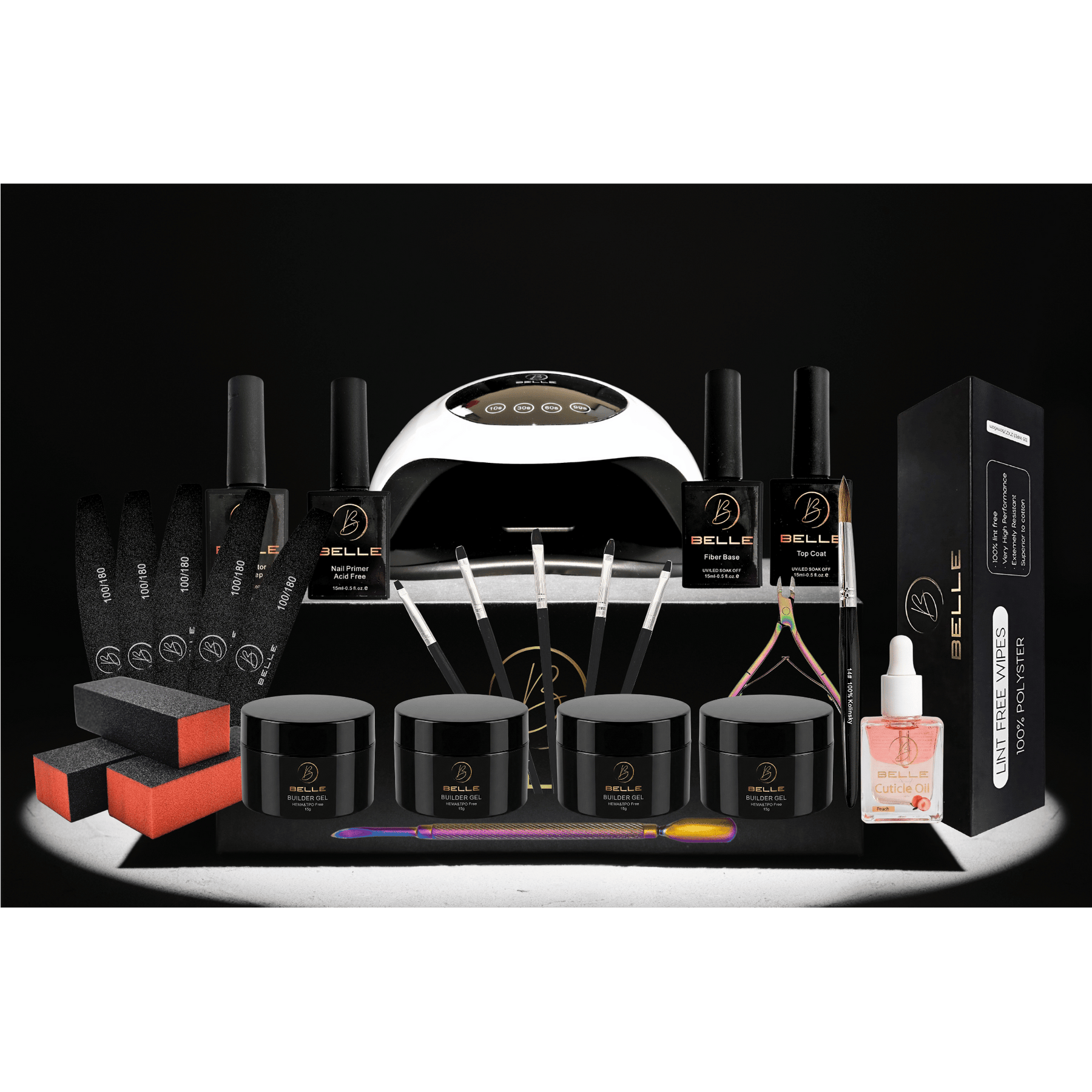 Ready to turn your desk into a professional studio? The Belle Beauty Professional Builder Gel Nail Kit is our most comprehensive collection yet. Whether you are a student starting your journey or a pro looking for a complete equipment overhaul, this gel builder nail kit delivers high-performance curing power alongside our signature HEMA & TPO Free sculpting system.