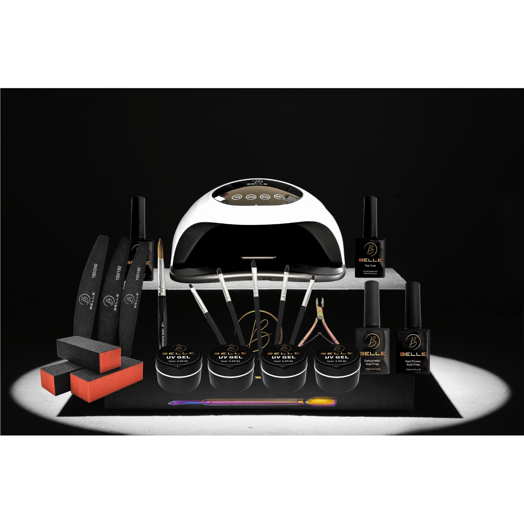 A: No need! This kit includes a professional UV lamp, perfectly suited for curing Belle Beauty’s builder gels quickly and evenly. It’s one of the most important tools for long-lasting results, and it’s all included.